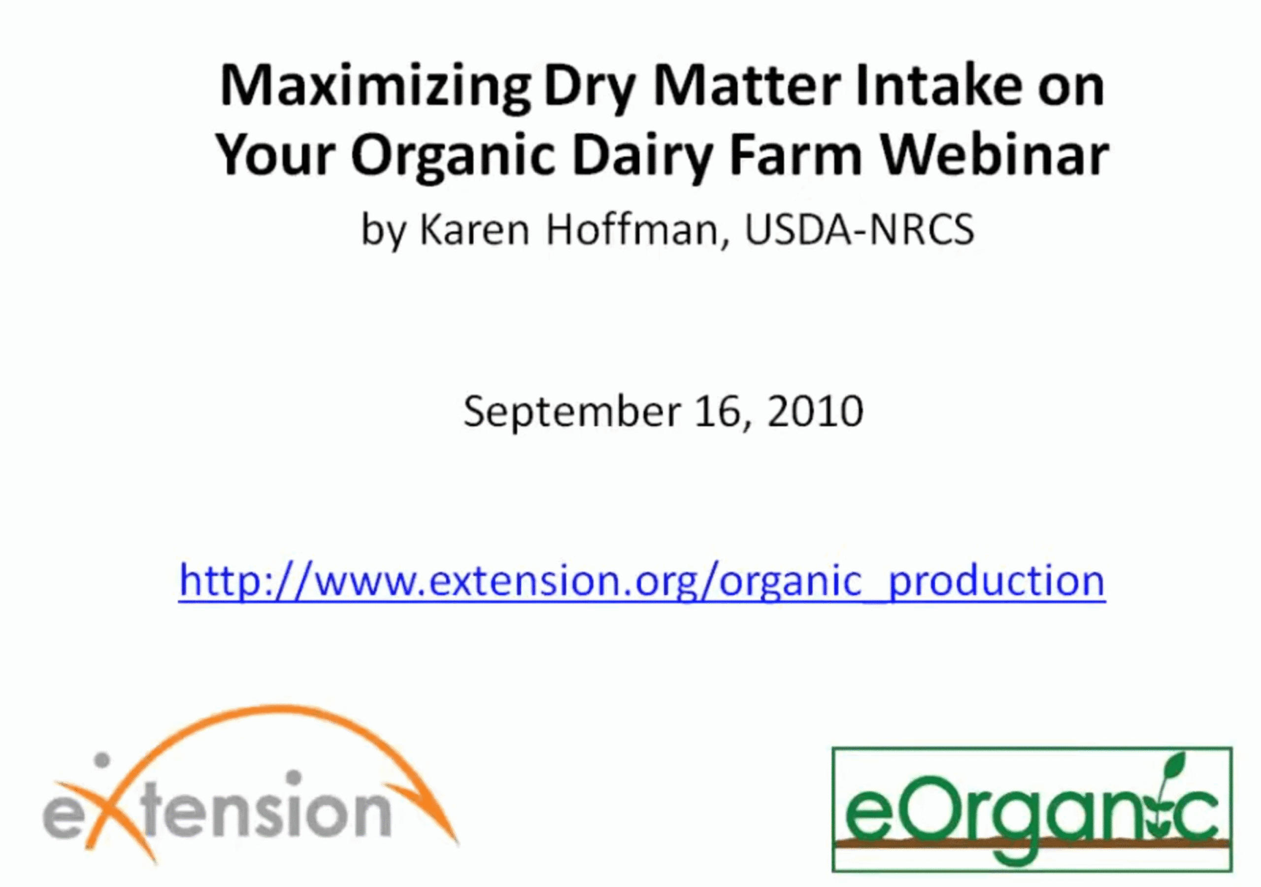 Webinar: Maximizing Dry Matter Intake on Your Organic Dairy Pastures