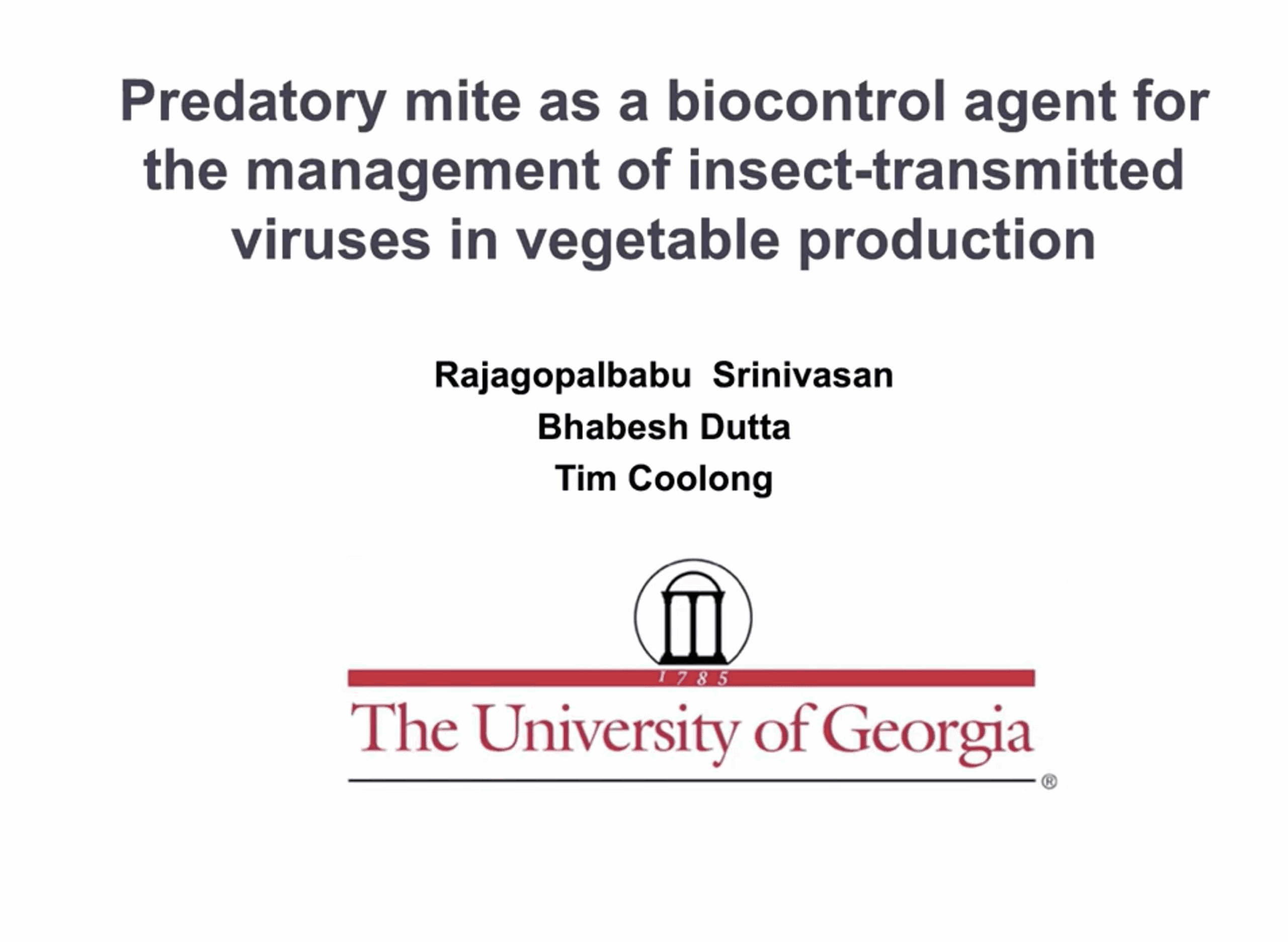 Join this webinar featuring Dr. Rajagopalbabu Srinivasan discussing biocontrol applications of the mite Amblyseius…