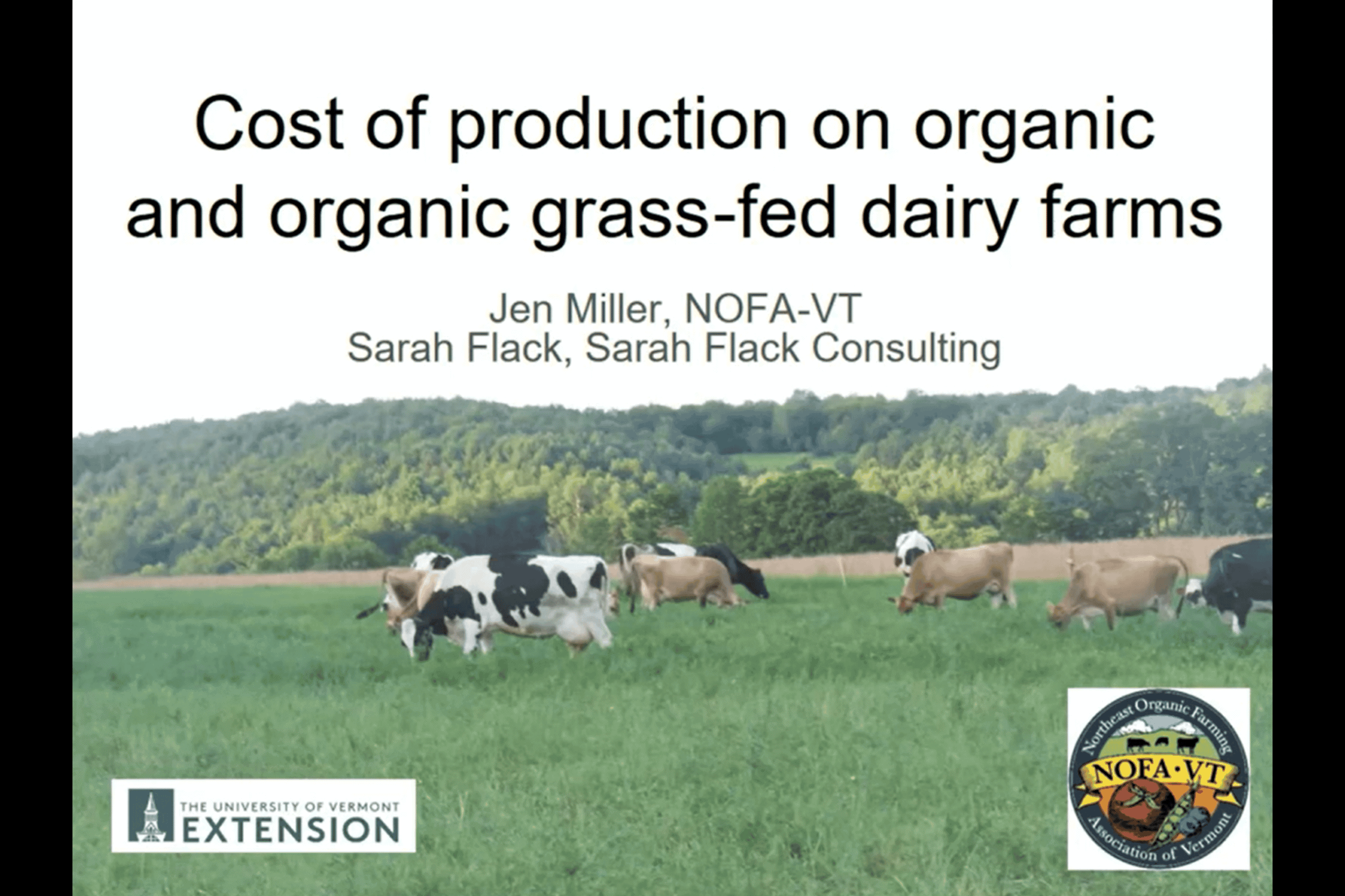 Join Sarah Flack, Farmer Services Coordinator at the Northeast Organic Farming Association of Vermont and Jen Miller, from the University of Vermont, for a discussion about the cost of production of grass-fed and organic dairy farms.