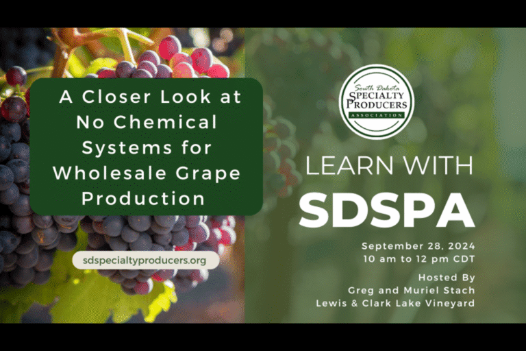 Join Greg and Muriel Stach from Lewis and Clark Lake Vineyard (Yankton, SD) on a video tour for producers interested in learning about wholesale grape production and no-chemical production systems. Learn about Greg’s experience selling wholesale grapes to a local winery, including harvest & delivery logistics, variety selection, production metrics, and quality testing.